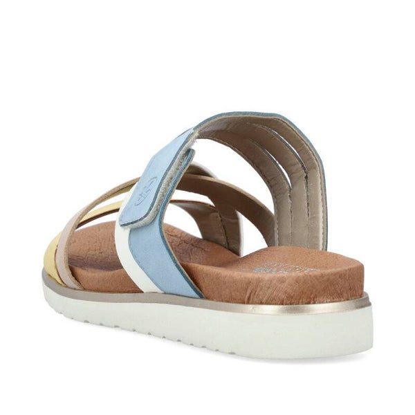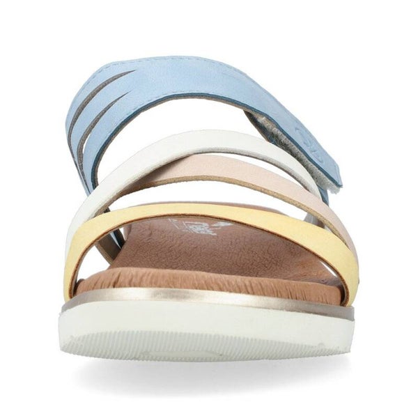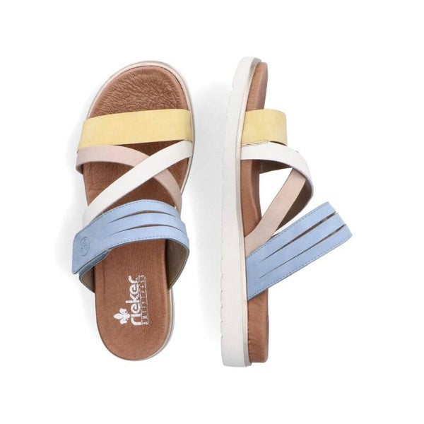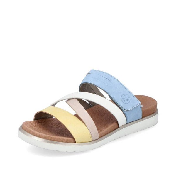 Rieker V5056-68 Damen Pantolette mit Klettverschluß, Farbe: weiß/gelb/rosa/blau, Obermaterial : Synthetik, Innenmaterial: Synthetik/Leder, für normale Füße geeignet