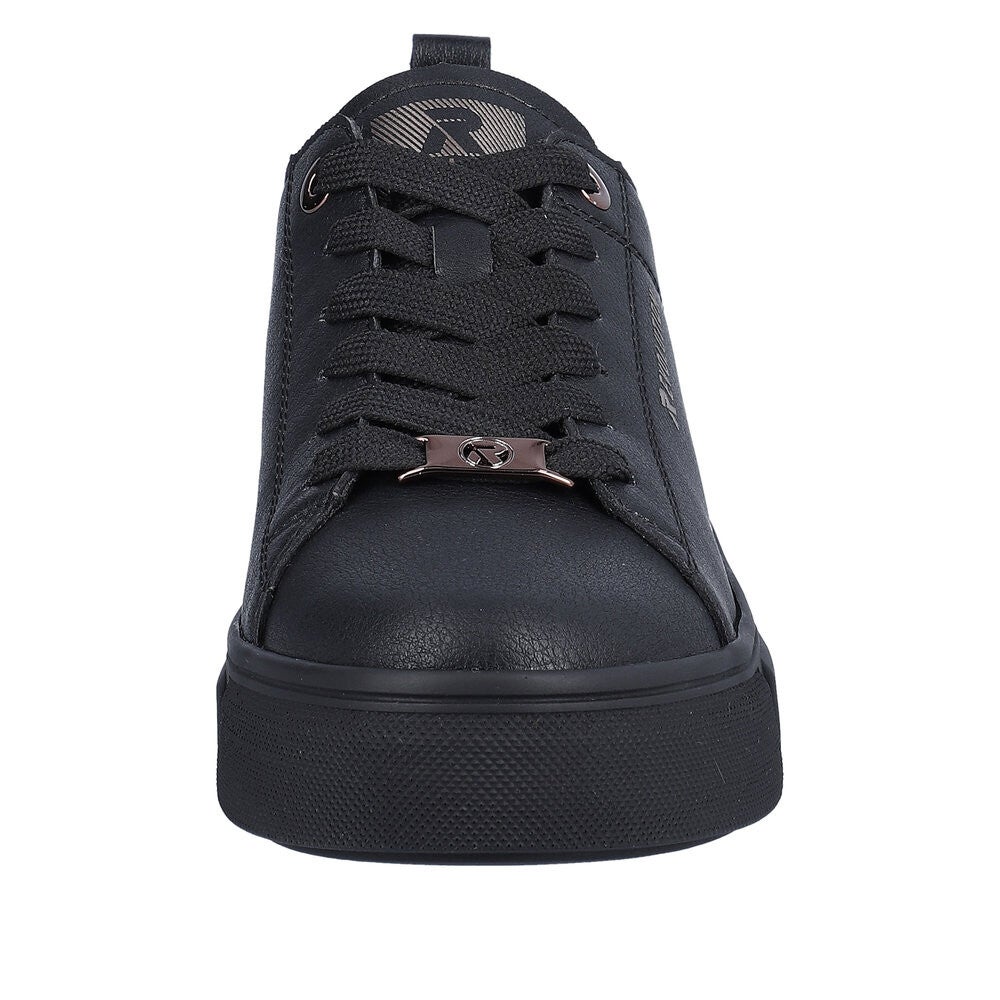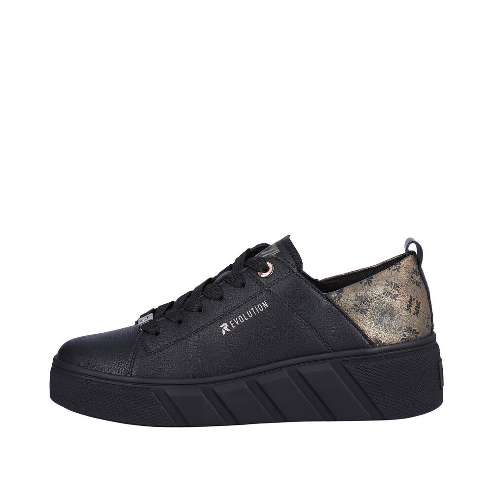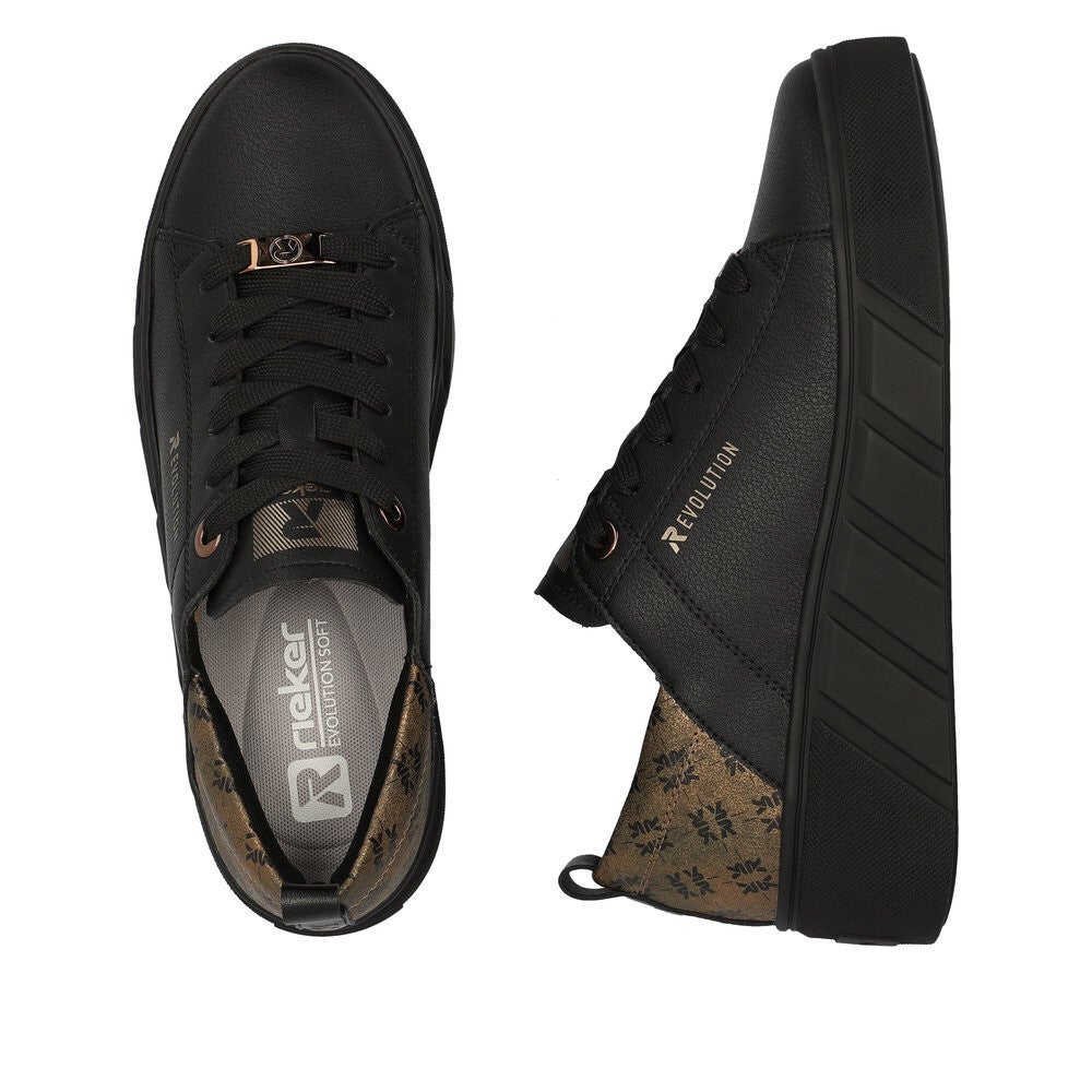 Rieker Evolution W0502-01 Damen Sneaker zum Schnüren, Farbe: schwarz/gold, Obermaterial: Synthetik, Innenfutter:Textil ( Synthetik), herausnehmbare Innensohle