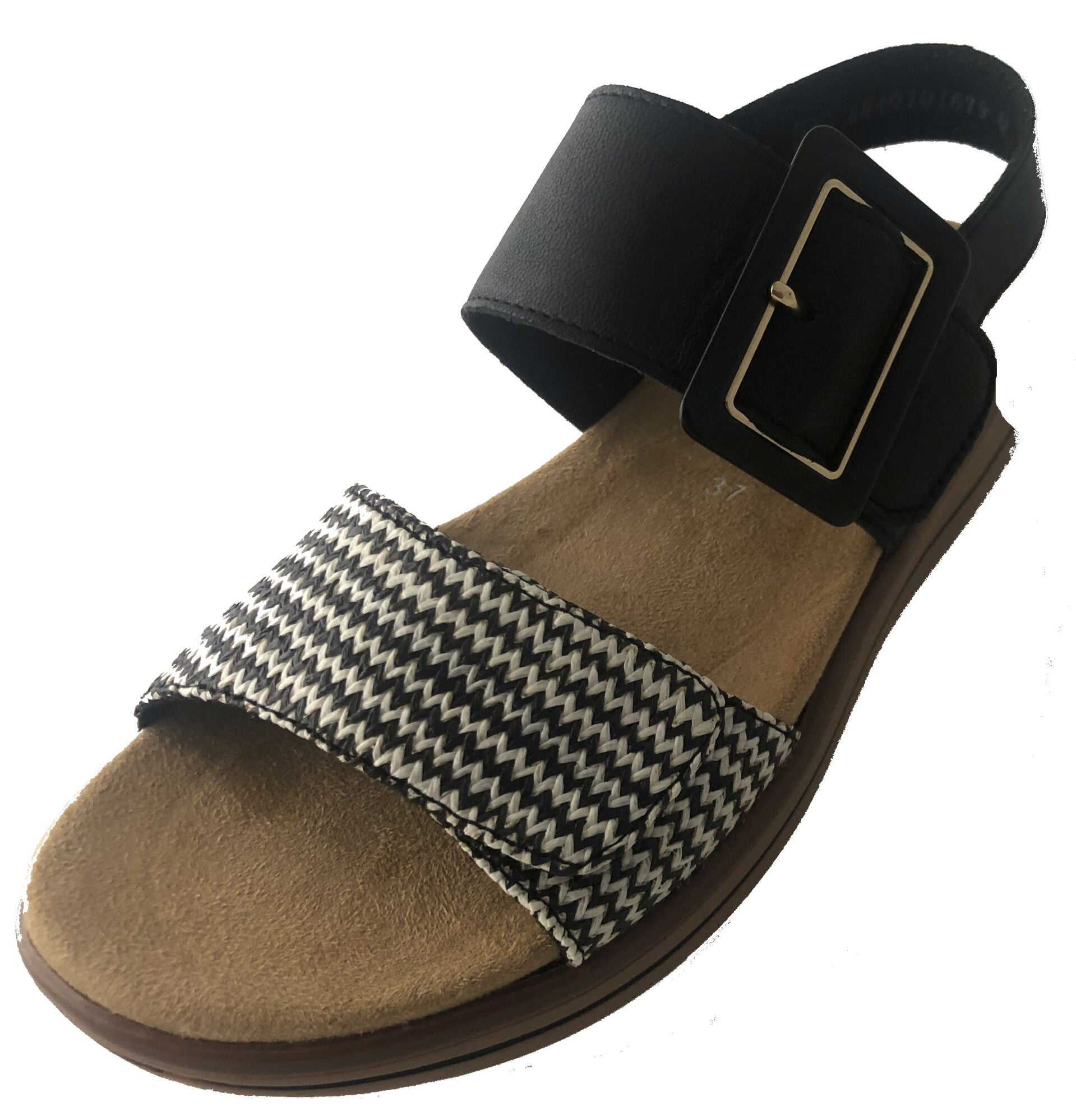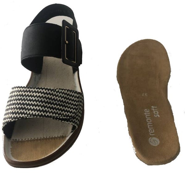 Remonte D1J53-03 Damen Sandale schwarz/kombi, Obermaterial: Leder/Textil, Innenfutter: Textil, herausnehmbare Innensohle