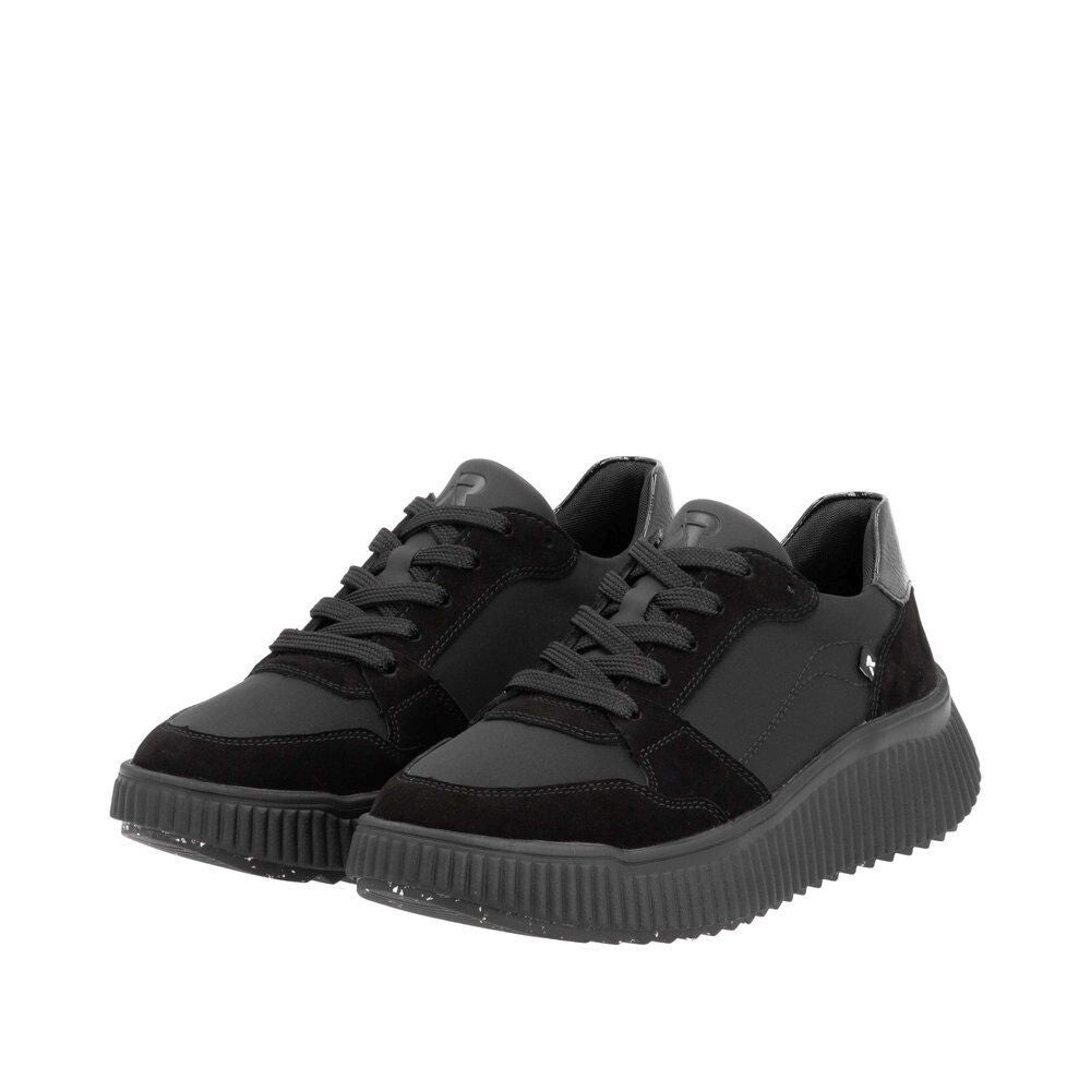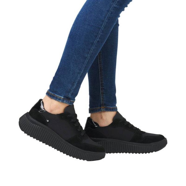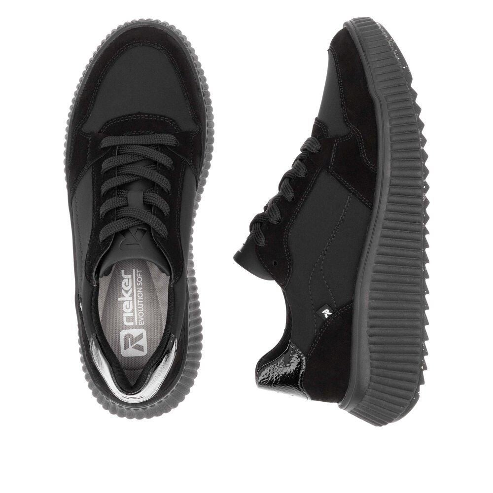 Rieker Evolution W1700-00 Damen Sneaker zum Schnüren, Farbe: schwarz, Obermaterial: Leder/Synthetik, Innenfutter: Textil, herausnehmbare Innensohle, für normale Füße geeignet