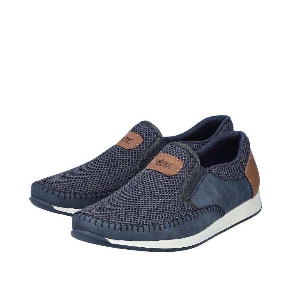 Rieker 11954-14 Herren Slipper, Farbe: blau/braun, Obermaterial: Synthetik, Innenfutter. Textil