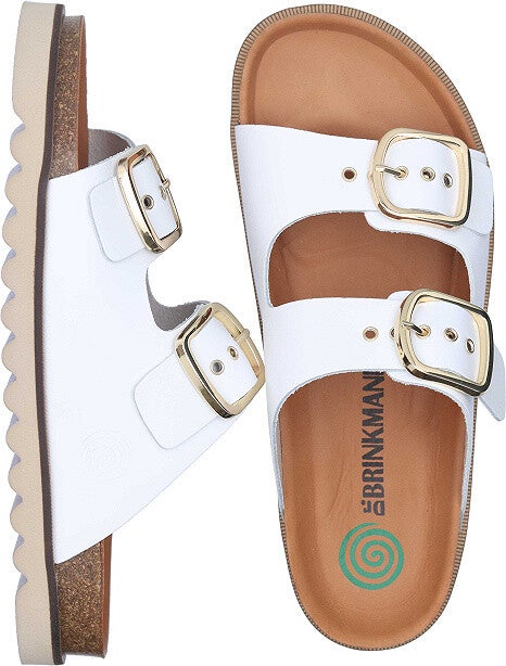 Dr.Brinkmann 700680-03 Damen Pantolette mit zwei Schnallen, Farbe:weiß, Obermaterial: Leder, ungefüttert,weiche Lederdecksohle, gepolstertes Naturform-Fußbett, Weite G ( für normal Füße geeignet)