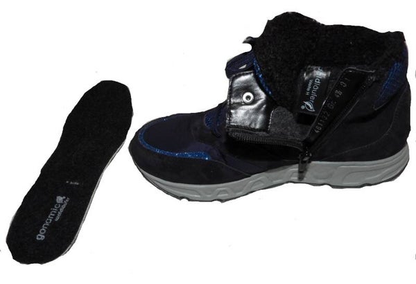 knöchelhoch, Farbe: blau, Obermaterial: Leder ( Velour )/ Textil, Innenfutter: Textil, Weite H ( für etwas stärkere Füße ), herausnehmbare Innensohle ( auch für lose Einlagen geeignet )