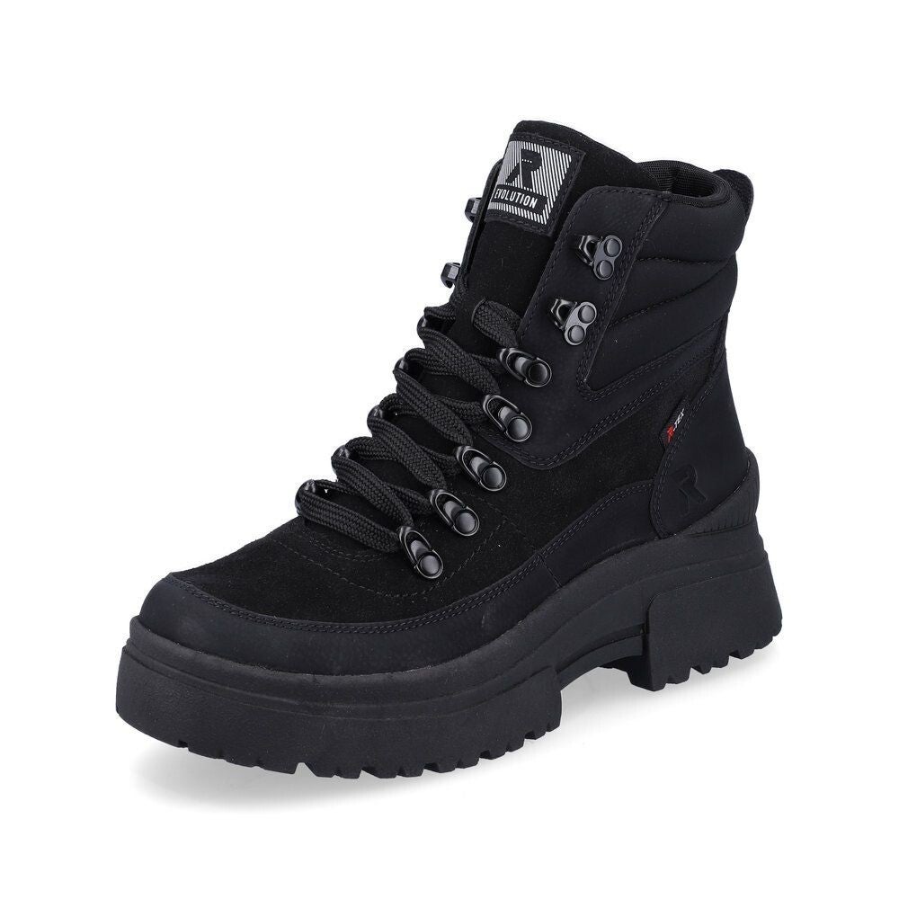Rieker Evolution W0370-00 Damen Stiefeltte boots mit Reißverschluß, Farbe: schwarz, Obermaterial: Leder ( NUbuk ), Innenfutter: Textl, herausnehmbare Innensohle, für normle Füße geeignet