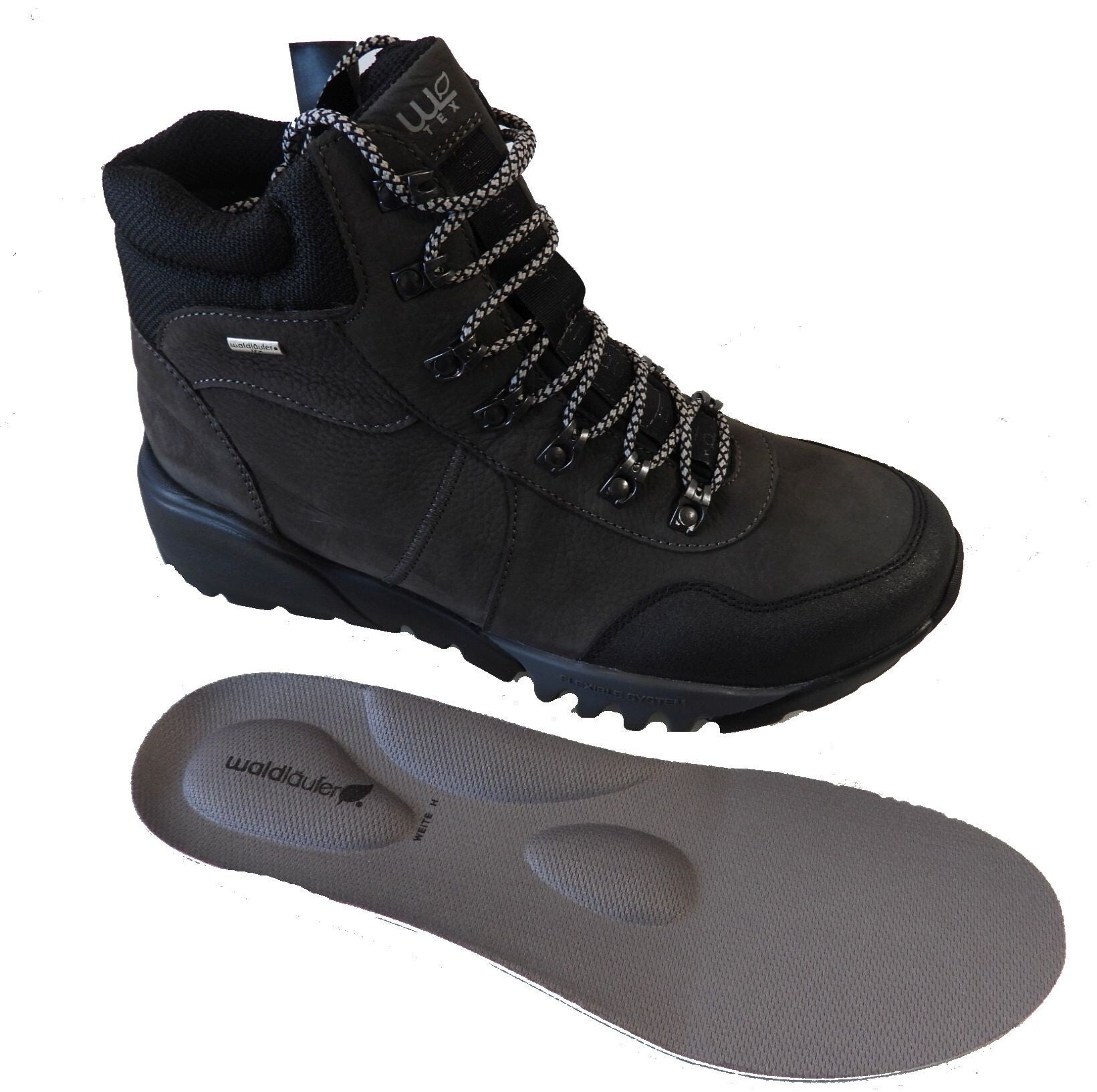 Waldläufer 729971-400-052 H-Fritz Herren Stiefelette boots Sneaker zum Schnüren, knöchelhoch, Farbe: schwarz carbon, Obermaterial: Leder ( Velour )/ Textil, Innenfutter: Textil, Weite H ( für etwas stärkere Füße ), herausnehmbare Innensohle ( auch für lose Einlagen geeignet ), Waldläufer-Tex