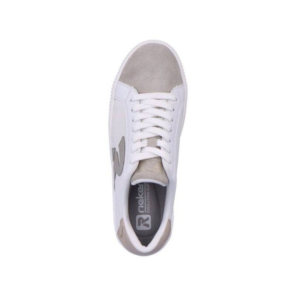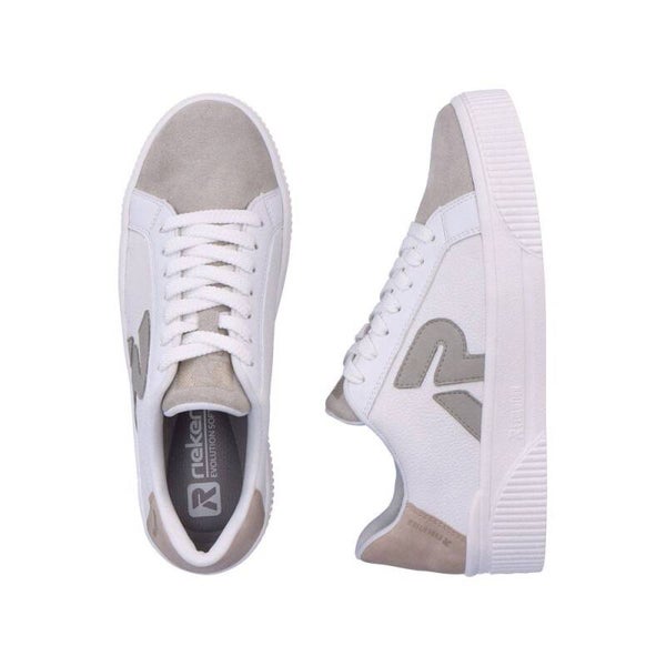 Rieker Evolution W0700-90 Damen Sneaker zum Schnüren, Farbe: weiß/beige, Obermaterial: Leder/Synthetik, Innenfutter: Textil, für normale Füße geeignet, herausnehmbare Innensohle ( auch für lose Einlagen)